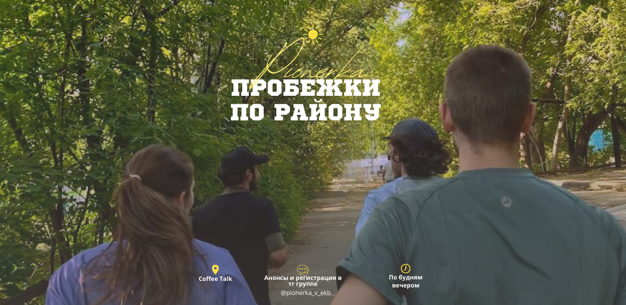 Отмечайтесь в тг канале или регистрирйтесь здесь, чтобы группа случайно не побежала без вас https://t.me/pionerka_v_ekb